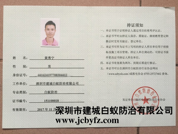 深圳白蟻防治上崗證書 您現在所在的位置:首頁 > 深圳白蟻防治上崗證書